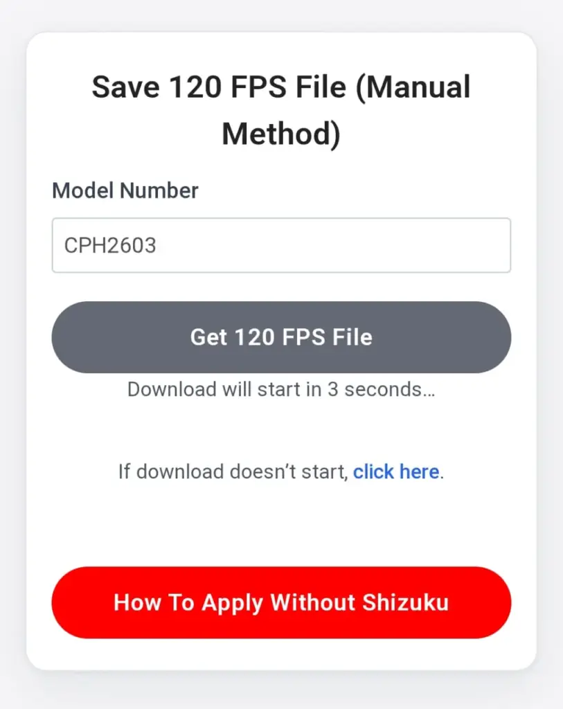- Finally, click on Get 120 FPS File to download and save the file on your phone.